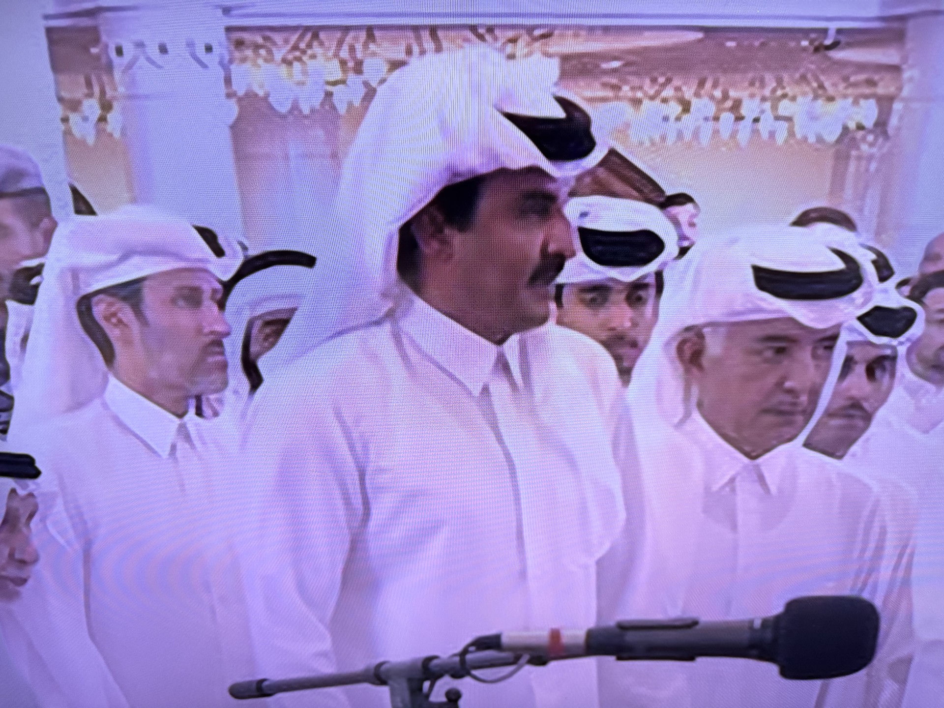 ولاحظ موقع (إطلالة) من خلال بث مباشر لـ”قناة الجزيرة مباشر” من جامع الشيخ محمد بن عبد الوهاب، الذي شهد صلاة الجنازة على ” الشهداء” أن النعوش حملها قطريون إلى داخل المسجد.