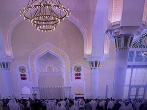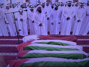 ولاحظ موقع (إطلالة) من خلال بث مباشر لـ”قناة الجزيرة مباشر” من جامع الشيخ محمد بن عبد الوهاب، الذي شهد صلاة الجنازة على ” الشهداء” أن النعوش حملها قطريون إلى داخل المسجد.