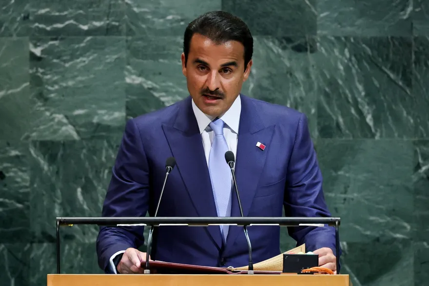 وبشأن الإعتداء الإسرائيلي على قطر،  قال لقادة العالم في نيويورك  :”تعلمون  إن الدوحة تعرضت يوم 9 سبتمبر ( 2025)  إلى اعتداء غادر استهدف خلاله اجتماع للوفد المفاوض لحركة حماس في مسكن أحد أعضائه في حي سكني يضم مدارس وبعثات دبلوماسية”.