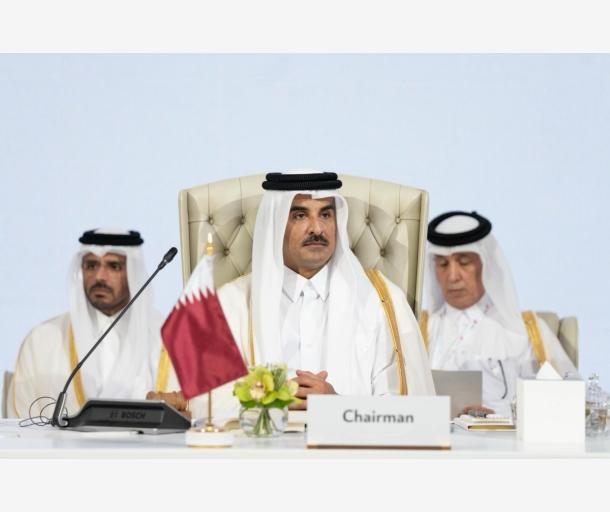 افتتح أمير قطر الشيخ تميم بن حمد آل ثاني القمة العربية الإسلامية، اليوم، بكلمة رصينة، واضحة المضامين، ، وأبرز ما تصدرها يكمُن في دعوة وجهها للقادة، بأن ” لا نكتفي بعقد قمة طارئة، بل أن نتخذ خطوات ملموسة لمواجهة حالة جنون القوة والغطرسة وهوس التعطش للدماء التي أصيبت بها حكومة إسرائيل”.