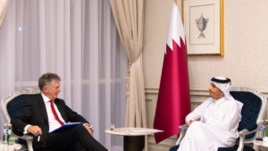 و اجتمع رئيس الوزراء وزير الخارجية القطري ،اليوم، مع مستشار الأمن القومي البريطاني جوناثان باول، وأفادت وزارة الخارجية أن الجانبين استعرضا علاقات التعاون بين البلدين وسبل دعمها وتعزيزها، وتطورات الأوضاع في المنطقة، لا سيما الهجوم الإسرائيلي الغادر الذي استهدف الدوحة.